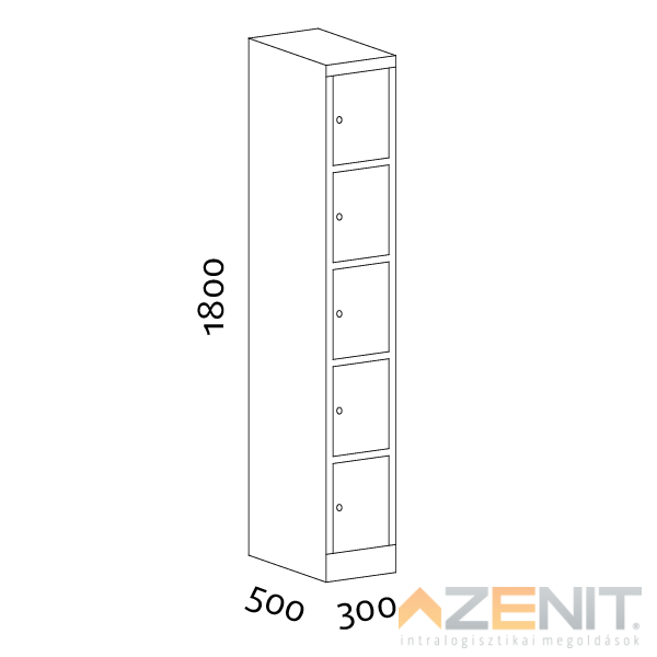 Értékmegőrző szekrény 5 rekeszes 5001/5 típus 1800x300x500 mm RAL 7035 szürke