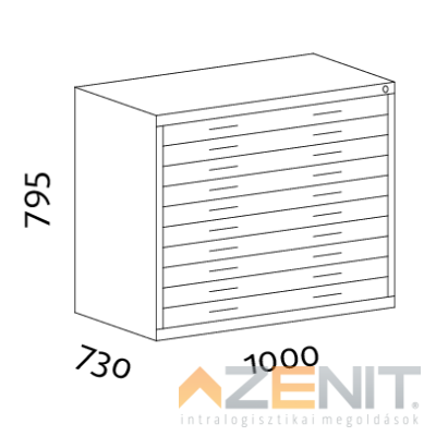 Rajz és térképtároló szekrény A1 típus 10 fiókos 1000x730x795 mm RAL 7035 szürke