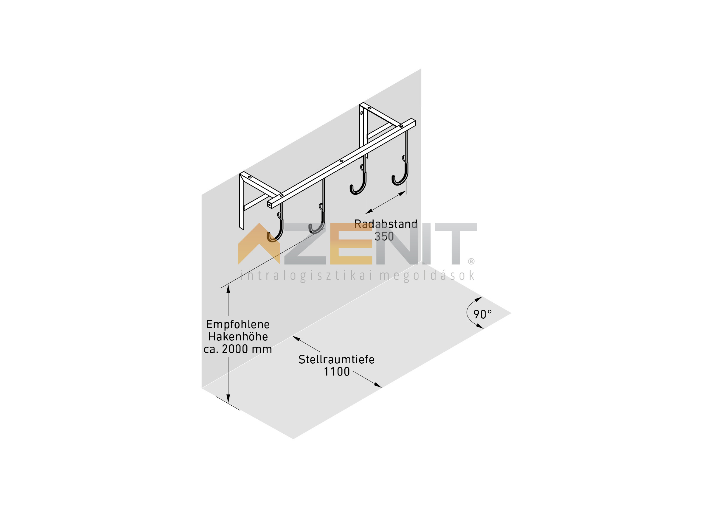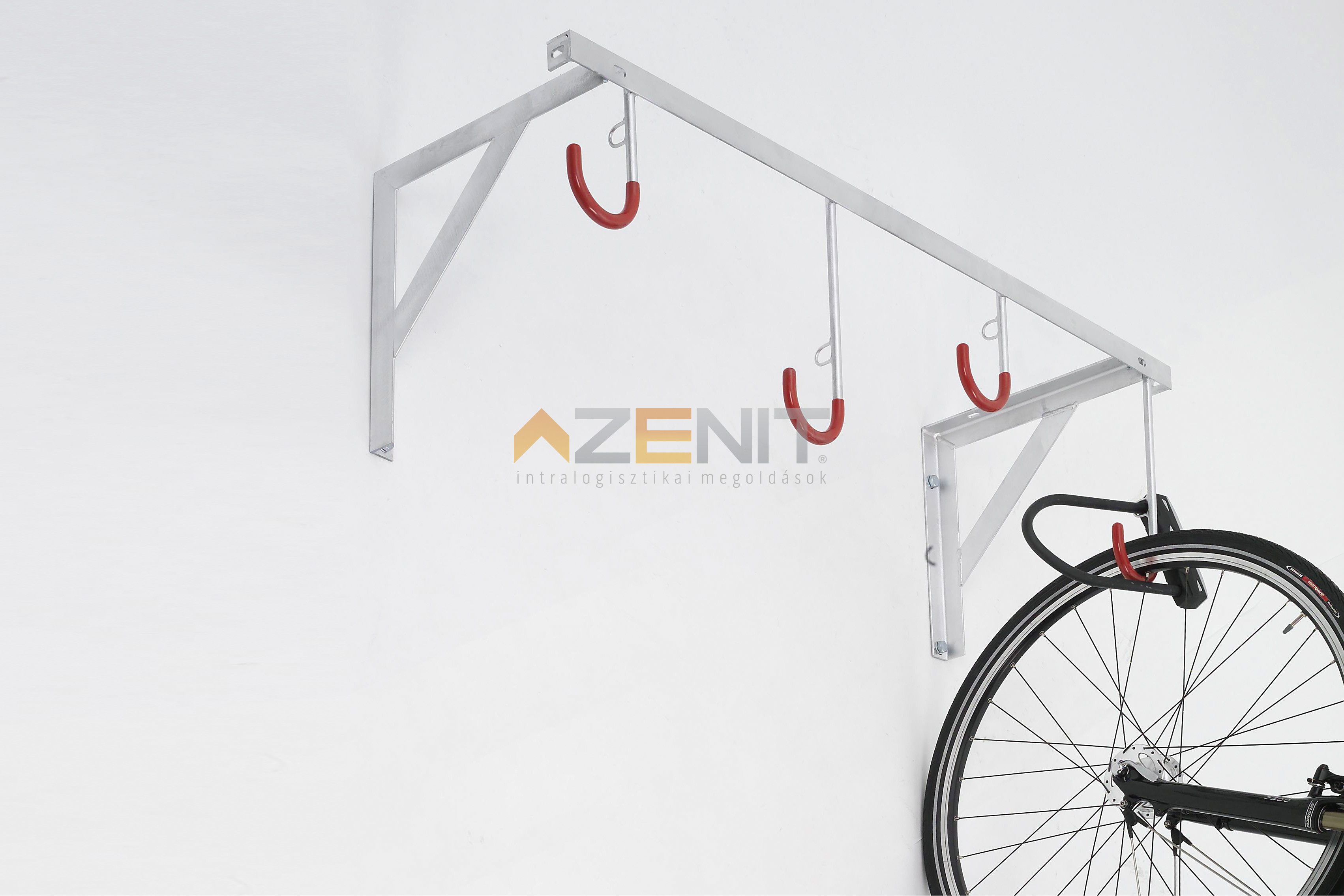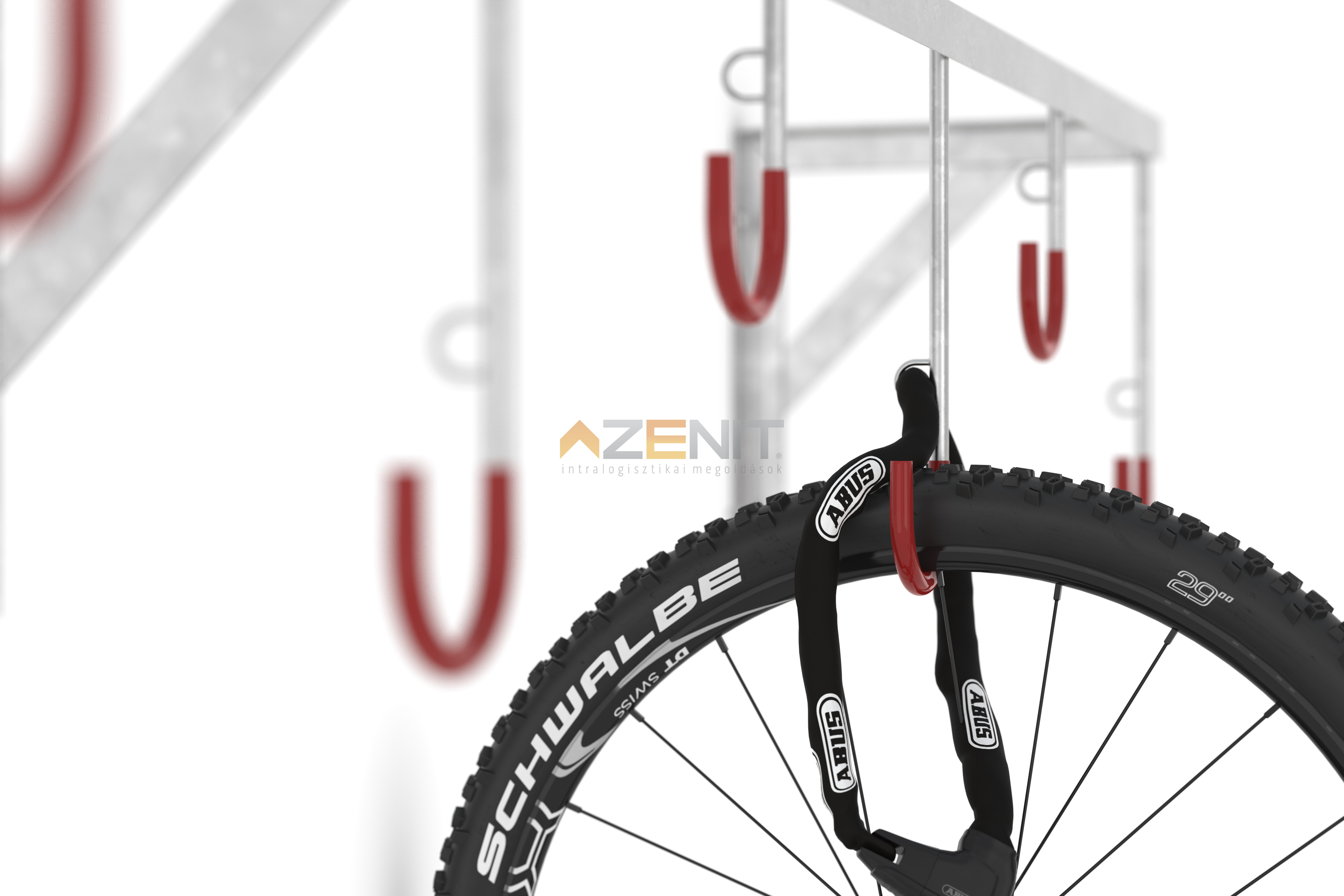 Függesztett tárolási rendszer a legtöbb típusú kerékpár helytakarékos elhelyezésére. A felnivédelem érdekében a felfüggesztőhorgok műanyag bevonattal burkoltak. Acél hurkok a lopás ellen védelemért.