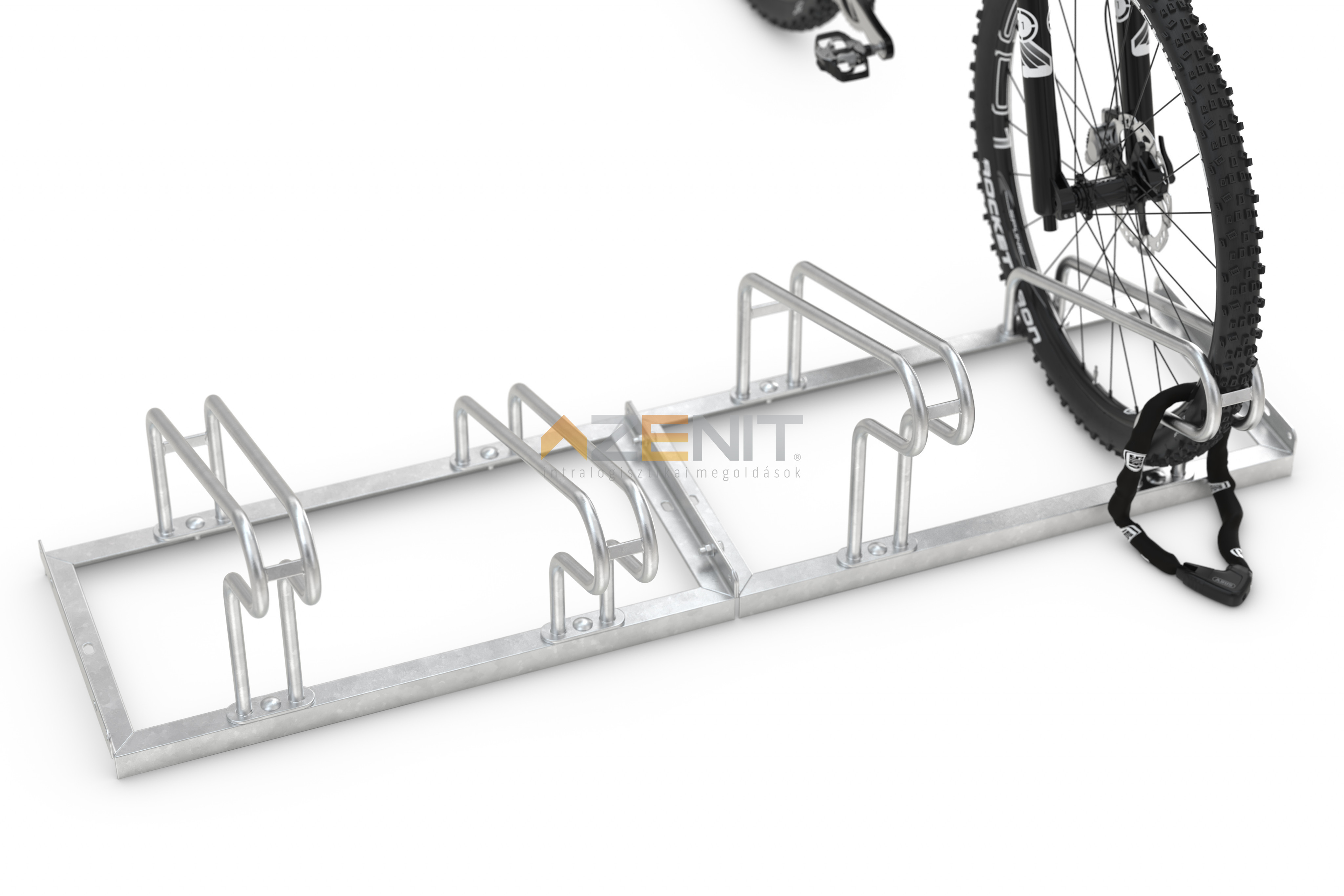 Stabil, dekoratív, típustól függően egy-, vagy kétoldali parkolást lehetővé tévő kengyeles kerékpártárolók, többféle tárolási kapacitással. A legnépszerűbb kerékpártárolók közé tartozik, jelentős tulajdonsága a stabil acélkonstrukció, rozsdamentes a tűzihorganyzásnak köszönhetően és a váltakozó magasságú tárolók által a helytakarékos tárolást tesz lehetővé. Az elemek egymáshoz kapcsolhatóak, illetve a földhöz rögzíthetőek. A rögzítés módja: dübelezhető. A kerékpártároló csomagolása alkatrészekre bontva történik a megfelelő csavarokkal és szerelési útmutatóval mellékelve. A kengyeles kerékpártartó lehetővé teszi a kerékpár vázának, illetve legalább az egyik kerekének rögzítését. A támasz a bicikliknek megfelelő támasztékot biztosít, így a kerékpár nem tud eldőlni.