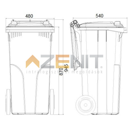Mobil hulladékgyűjtő konténer 240 literes műanyag Standard fedéllel zöld