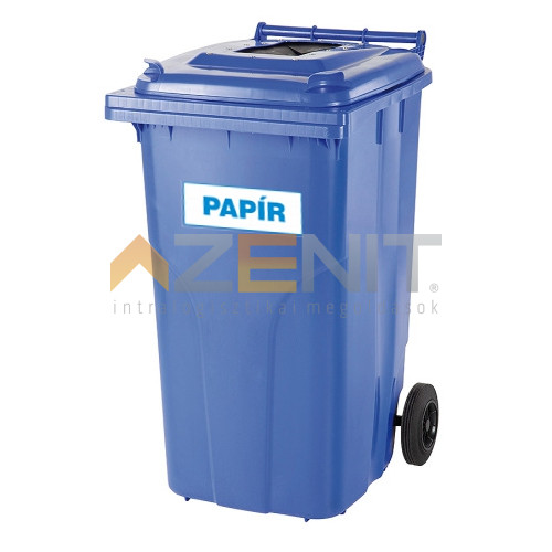 Mobil hulladékgyűjtő konténer 240 literes papír gyűjtésére alkalmas fedéllel kék