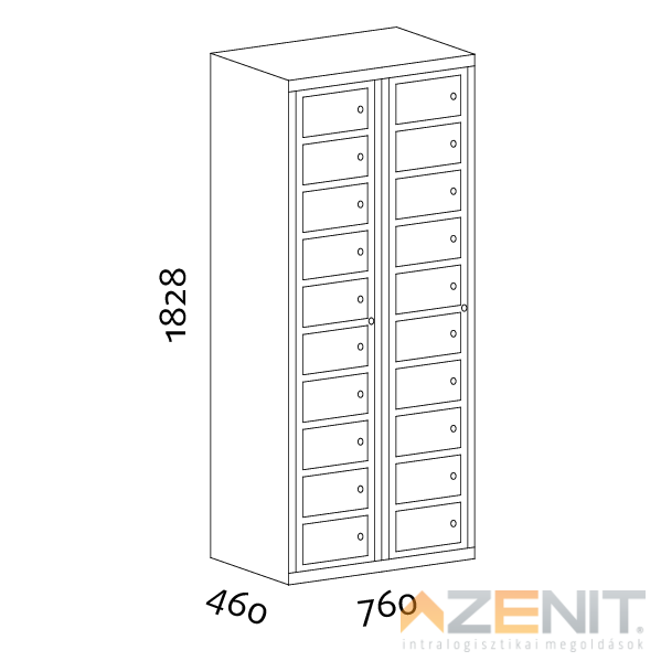 Kiadószekrény mosodai 2 oszlopos 10 rekeszes 1828x760x460 mm RAL 7035 szürke