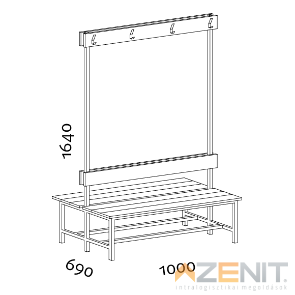 Öltözőpad lécezett háttámlás kétoldalas 1200 mm teljes magasságxmélység 1640x690 mm...