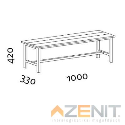 Öltözőpad lécezett háttámlás kétoldalas 1000 mm teljes magasságxmélység 1640x690 mm...