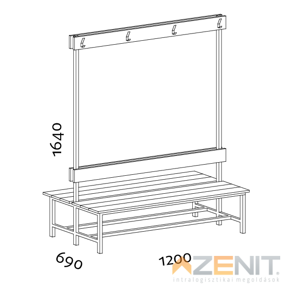 Öltözőpad lécezett háttámlás kétoldalas 1200 mm teljes magasságxmélység 1640x690 mm...