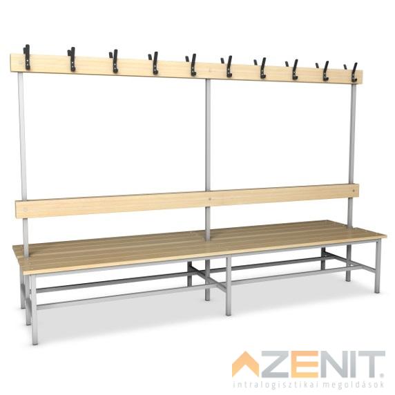Öltözőpad lécezett háttámlás kétoldalas 2500 mm teljes magasságxmélység 1640x690 mm...