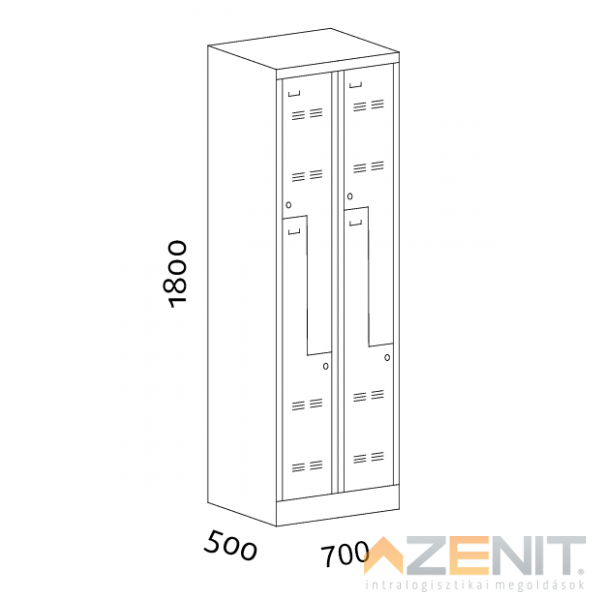 Öltözőszekrény fém hosszú 2 ajtós KS5002 típus 1800x600x500 mm RAL 7035 szürke