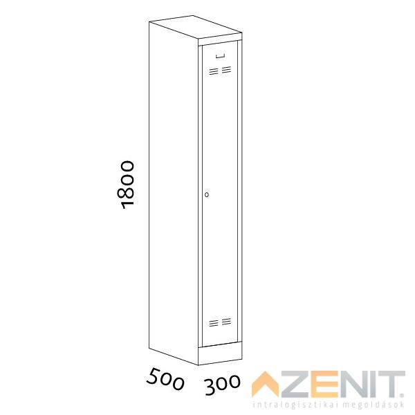 Öltözőszekrény fém hosszú 1 ajtós KS5001 típus 1800x300x500 mm RAL 7035 szürke