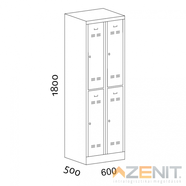Öltözőszekrény fém KS "Z" 4 ajtós 5350/4 típus 1800x700x500 mm RAL 7035 szürke
